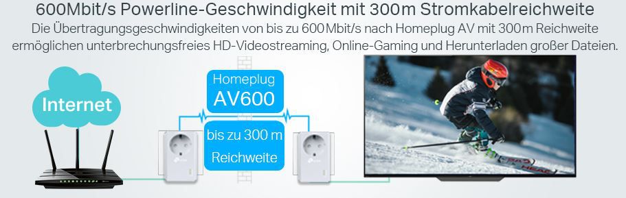 Das ist natürlich nicht mehr die neueste Technik. Aber mal ganz ehrlich. Die meiste Zeit braucht man ja nicht die maximalen Übertragungsraten neuerer Geräte. Für den günstigen Einstieg bekommt man hier das TP-Link Powerline Adapter Starter AV 600 PA4010P für 33,99€ inkl. Prime Versand.