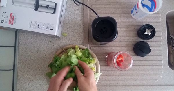 - Trinkflasche / Mixbehälter (600 ml) mit Skala aus BPA-freien TRITAN