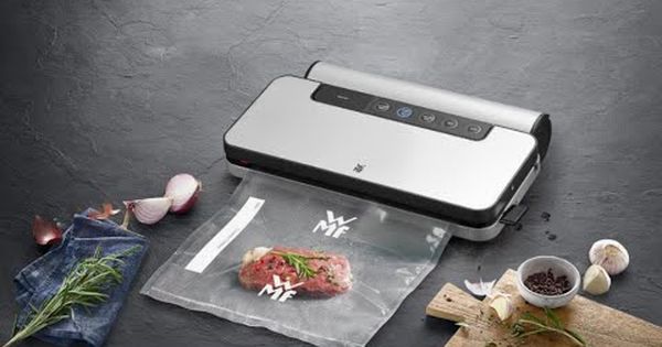 So wie von WMF gewohnt, besteht auch der Vakuumierer aus hübschen Cromargan. Das sieht schon ein wenig edler aus, oder? Das Gerät arbeitet mit einer 30 cm langen Doppel-Schweißnaht und bietet 5 beleuchtete Funktionstasten. Bei Amazon gibt es momentan 4 von 5 Sternen für den Vakuumierer, welcher in anderen Shops übrigens mindestens 80€ kostet.